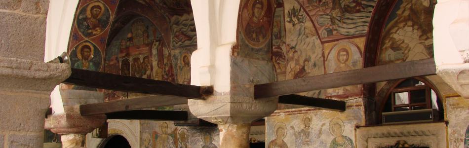 Ιδιαίτερο ενδιαφέρον έχει η Τράπεζα της μονής (δεν είναι επισκέψιμη), όπου διασώζεται ένα μικρό κομμάτι μαρμάρου της αρχαίας τράπεζας που ήταν δωρικού ρυθμού. Είναι ο μόνος μοναστηριακός χώρος τράπεζας που έχει τρούλο και οι τοιχογραφίες (17ου αιώνας) προήλθαν από το καθολικό της μονής: τις έφεραν εδώ όταν από το σεισμό του 1956 αποκαλύφθηκαν από κάτω παλαιότερες, του 12ου αιώνα (αυτές που θα δείτε σήμερα στο καθολικό).